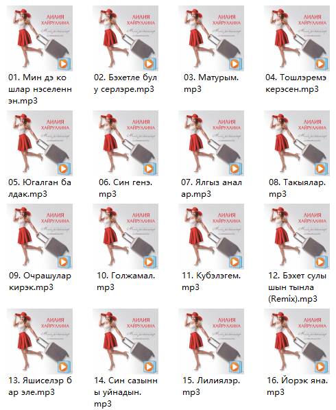 这位女歌手Лилия Хайруллина的专辑以前推荐过一张 名为Бирмә мине беркемгә дә 发行于2015年 本月最新专辑都是全新歌曲 个别歌曲节奏很欢快