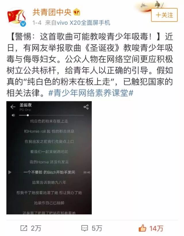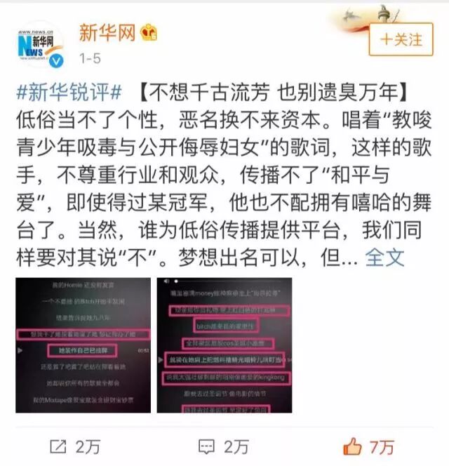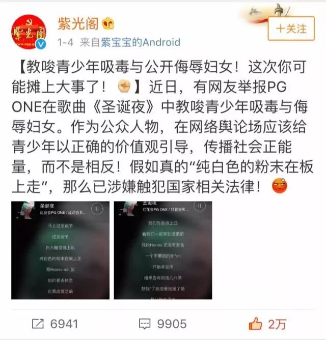 涉及教唆青少年吸毒、黄色暴力及侮辱妇女。