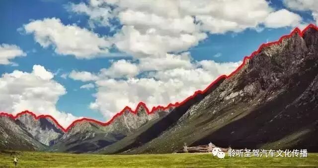 现实生活中,“波形图”其实就像我们看远处“群山的轮廓”一样,如下图中红线标出的部分。我们如何将这条红线画到另一张纸上(这纸不能是透明的,否则直接描红了)?