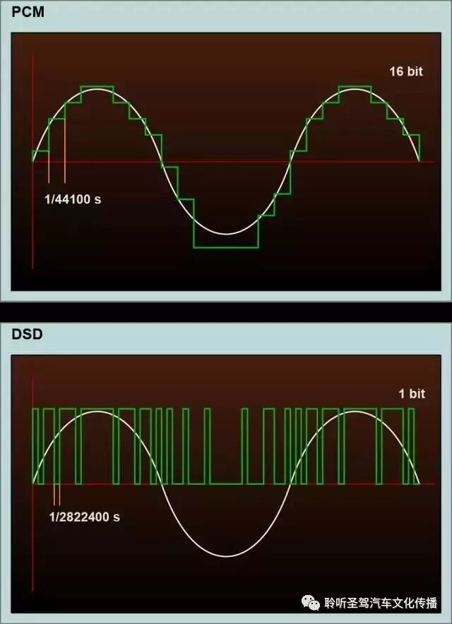还有另一种DSD格式(或DSF格式)的音乐。这种音乐的录音方式和以上所有的都有所不同。它的采样频率高达惊人的2.8224MHz(是CD音质采样频率的64倍,这种采样频率也被称为64DSD,还有128DSD,采样频率是CD音质的128倍),但量化位数只有1bit。这种音频的录音方法和前文提到的方法完全不同。前文的方法被称为PCM(Pulse-Code Modulation),就是将声音信号转换成波形图,然后记录波形图。而DSD格式采取PDM(Pulse-Density Modulation)的方法录制。