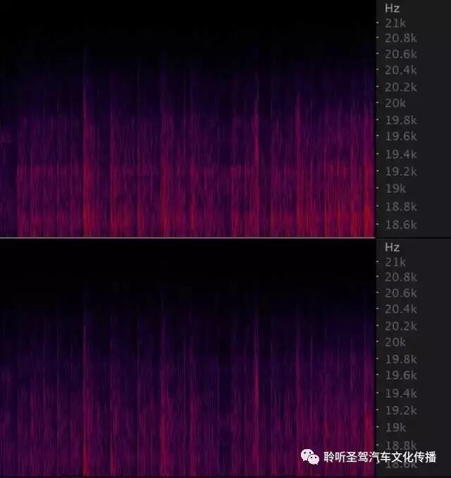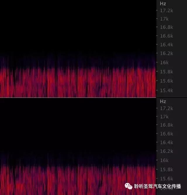 对于同一首歌的无损音质版本(上图)和mp3版本(下图)中,我们可以看到,无损音质版本的音频往高频一直延伸到20.5KHz,而mp3版本则在约16kHz处被完全截断了。这表示不论使用多好的设备来放这段音频,16kHz以上的频率都听不到了。但是对于压缩来说,无损版本22.4MB,mp3版本3.9MB,压缩掉了80%多……这也意味着,原来的1GB还装不下50首歌,压缩过后就能装250多首……牺牲一些音质换来更多的歌曲存量,还算是值得。