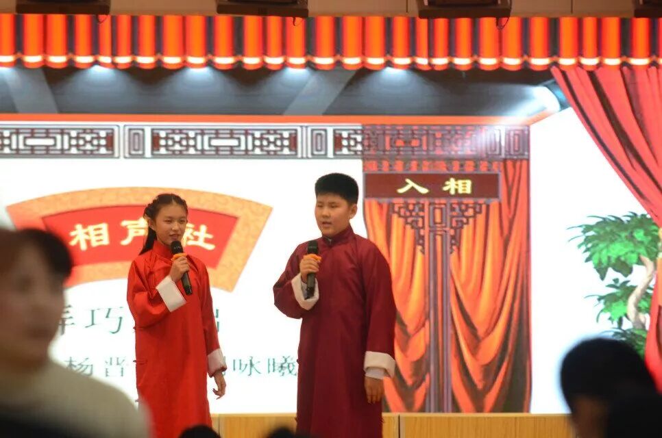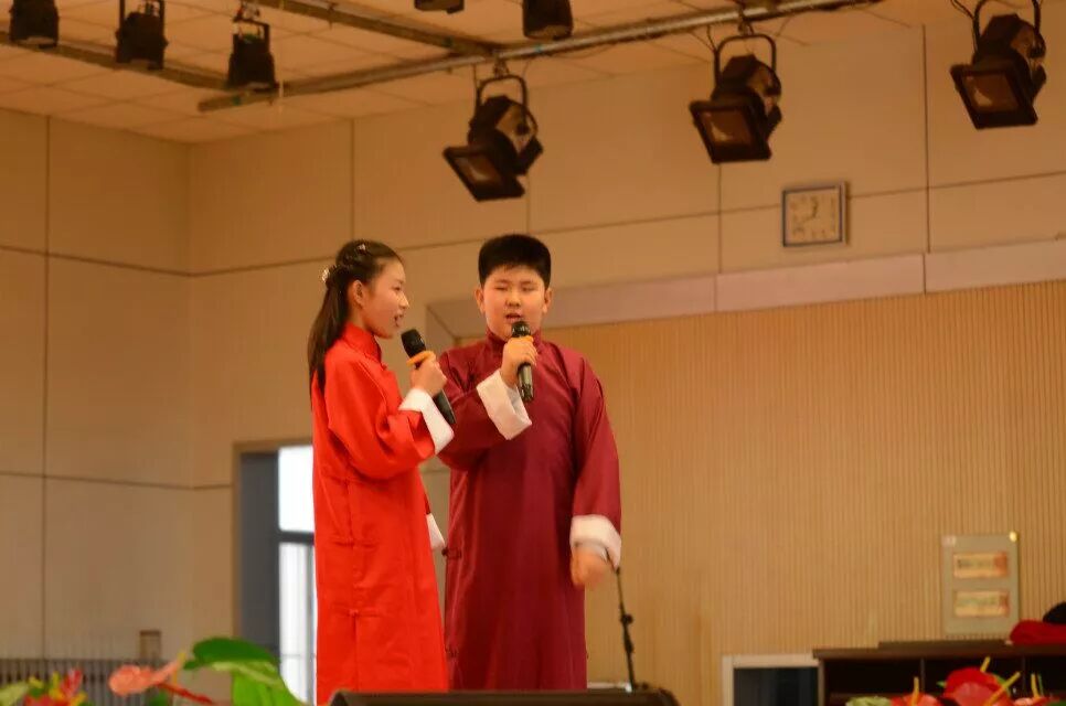 他们两个从一年级开始一起学口才,一起朗诵,一起主持节目,他们精彩的表演赢得了同学们的阵阵掌声,今天杨晋铭、刘咏曦带来的相声《弄巧成拙》