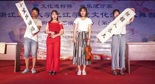 今年暑假,学院团委紧紧围绕学院“校地合作建设年”的工作要求,将文艺下乡、文化下乡、文明下乡与“双百双进”社会实践、“治水剿劣”志愿服务、“新高考”招生宣传等重点工作结合起来,共组织100余名大学生走进柯桥区11个乡镇(街道)进行专场演出,让更多的柯桥百姓认识之江、了解之江、关注之江,为学院建设一流的区域性应用型大学贡献青春力量。
