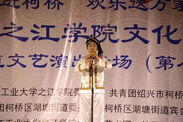 晚会高潮迭起、精彩纷呈,现场气氛热烈、掌声不断。舞蹈《维族姑娘》、《藏歌唱起来》、《hard carry》、《365 fresh》、《就很high》、《红颜旧》等,将传统文化和地域文化特色有机融合,展现出之江学子的青春活力。葫芦丝独奏《月光下的凤尾竹》、古筝弹奏《浏阳河》、电子琴演奏《祝福的礼赞》、笛子合奏《金蛇狂舞》等器乐节目,婉转动听,余音袅袅,带给观众全新的视听感受;小品《书剑恩仇录》、小提琴书法秀《但愿人长久》、尤克里里弹唱《小情歌》、朗诵《以梦为马》、越剧《十八相送》等,淋漓尽致地展现了我院学子的艺术才华。歌曲《国家》、《我的歌声里》、《父亲》、《身骑白马》、《虎口脱险》、《当你》、《时间煮雨》、《难忘今宵》或高亢悠扬,或柔情似水,引得台下观众不时合唱互动。演出中,当地文艺工作者和业余文艺爱好者也纷纷上台与我院学子联袂表演,受到群众们的热烈欢迎。