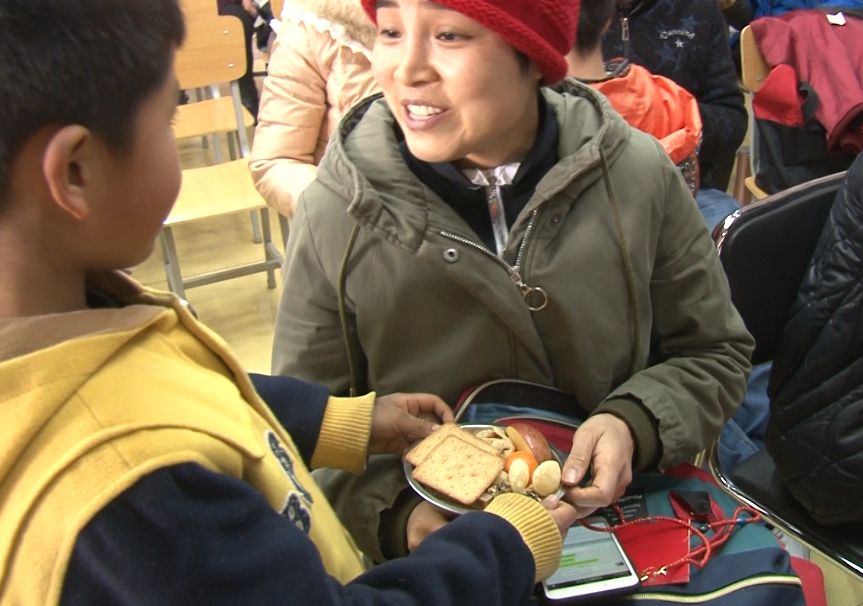 孝亲感恩环节孩子们为家长献上点心和祝福