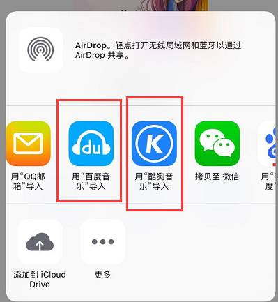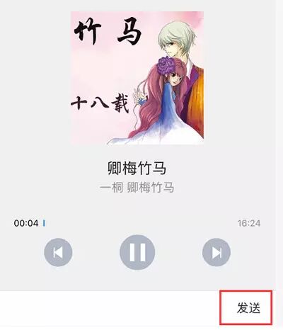 打开后会进入播放页面,如果觉得QQ浏览器不方便,您可以点播放页面右下角的“发送”按钮,会在底部弹出功能菜单,选择您使用的音乐APP即可导入进去,更方便您播放了,如下图: