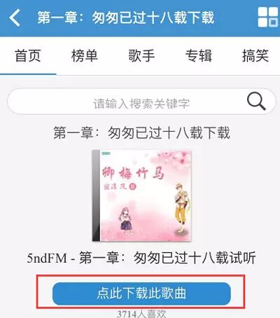 进入下载页面点“点此下载此歌曲”,如果之前未输入验证码,会提示您输入验证码,请先在5nd音乐公众号输入“1”获取验证码,输入后点“下载”即可,验证码输入一次即可多次下载,一般时间为几天,过期后可再次获取,如下图: