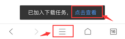 下载到什么地方了?怎么查看?很简单,下载时会出现“点击查看”,您只需点“点击查看”就可以了,如果忘记点了,就点浏览器下面的”三“符号也可以找到下载的音乐,如下图: