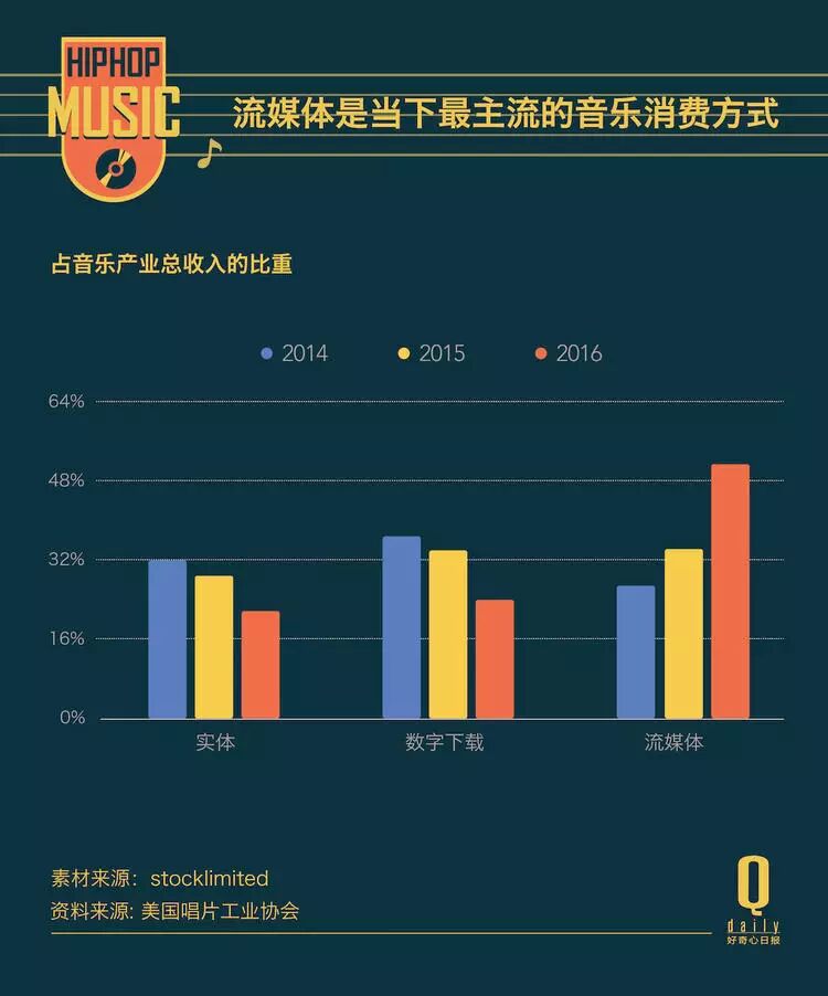 流媒体成为最主要的听歌方式推动了嘻哈的崛起。