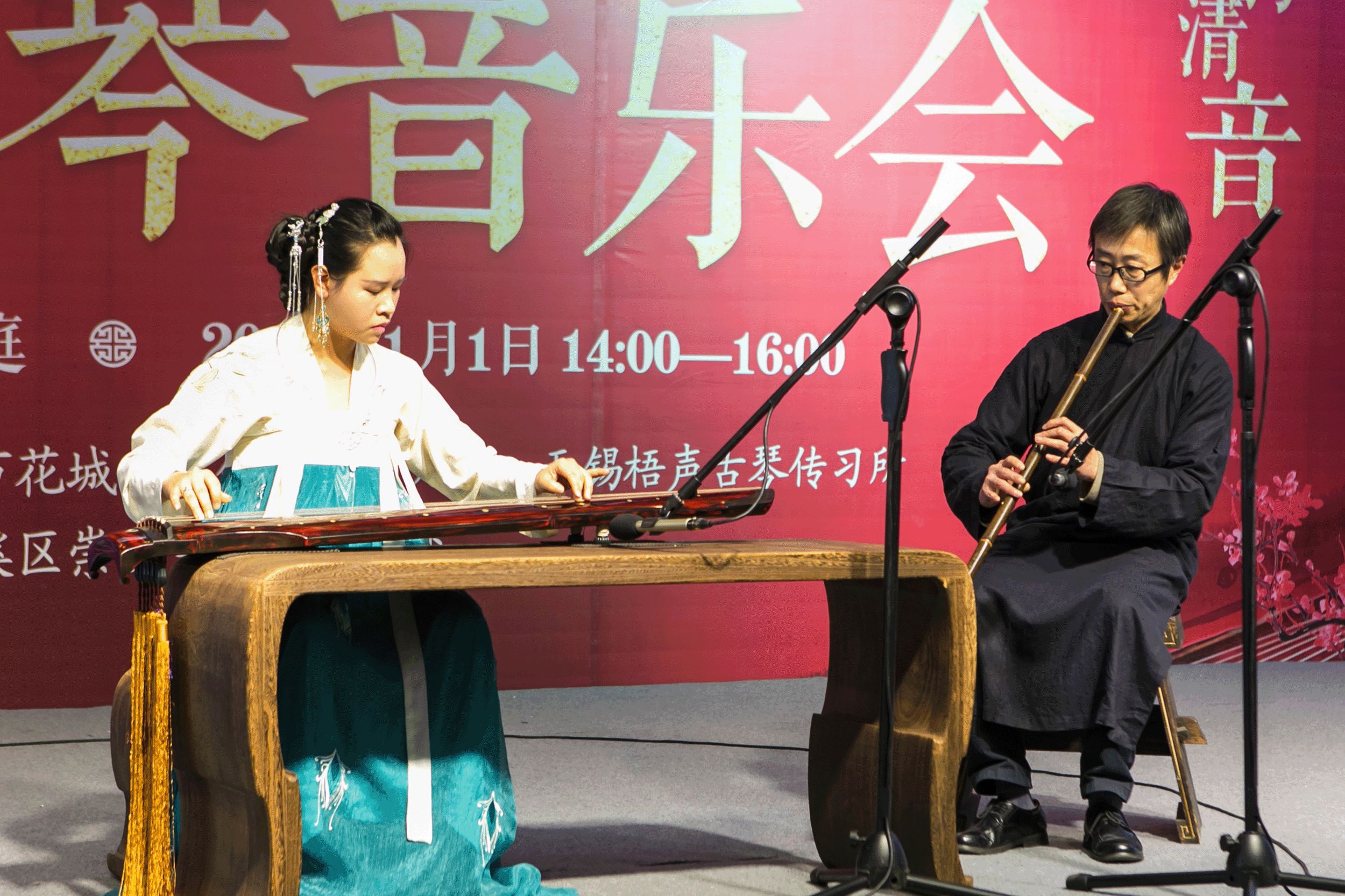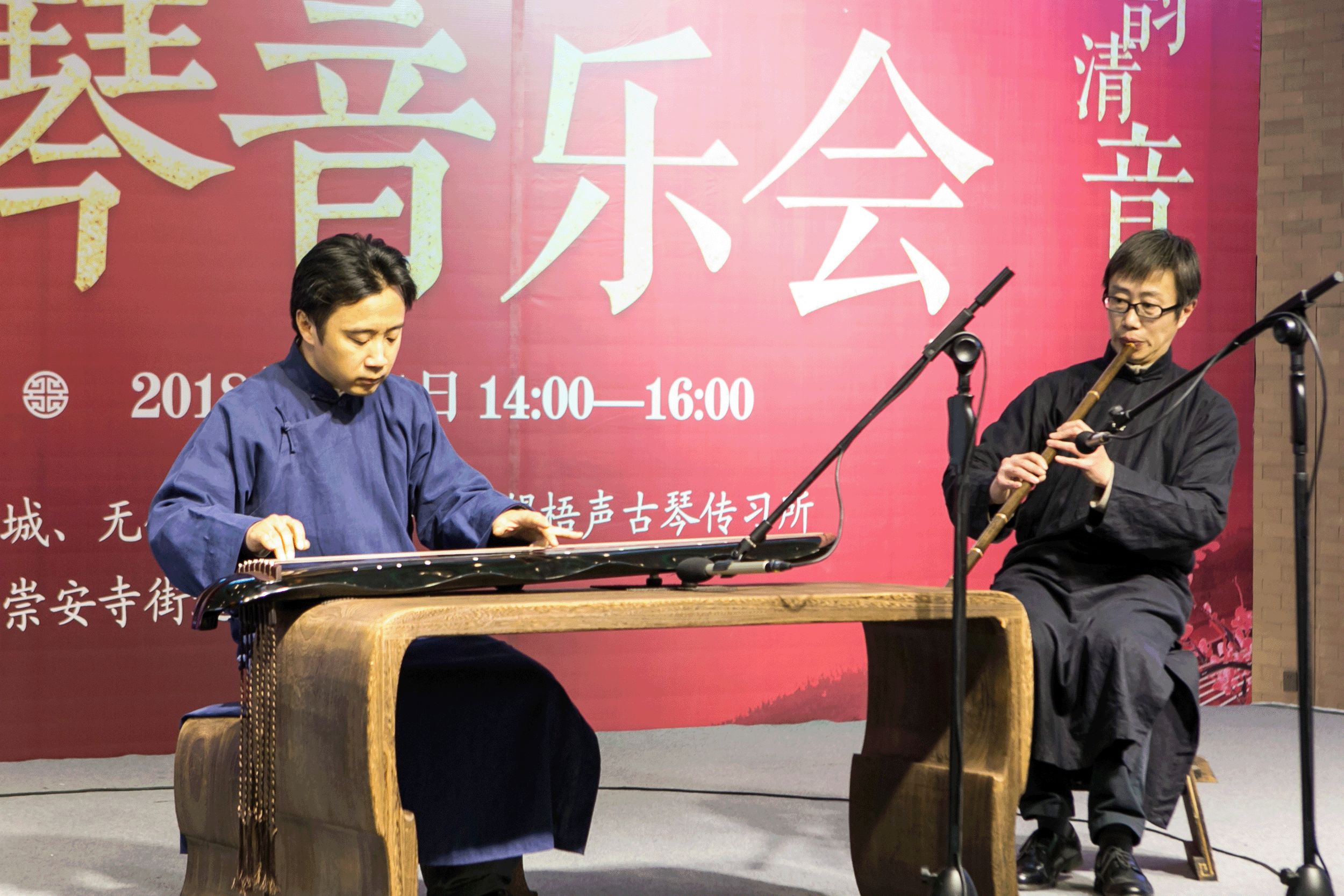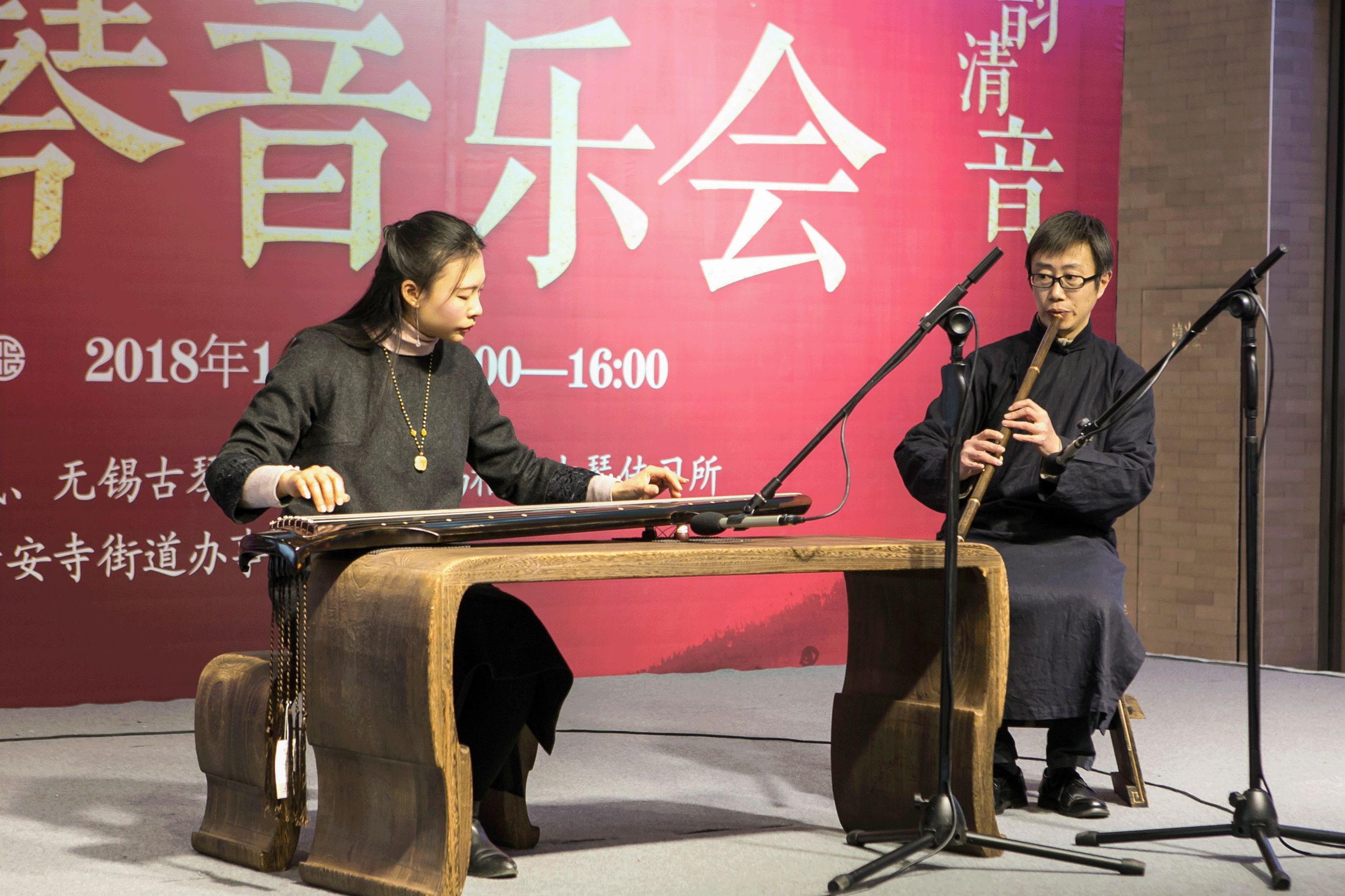 随后,来自无锡古琴研究会、无锡梧声古琴传习所的老师们献演了《潇湘水云》《梅花三弄》《流水》《秋鸿》等十首古琴名曲。曲目历史跨度一千多年,有古琴独奏、琴箫合奏和琴歌弹唱。其中还有民国无锡琴家创作的传世作品《陋室铭》等,内容丰富,呈现了古琴艺术之美,体现了无锡古琴传人的艺术水准和传承深度,为2018新一年的非遗传承与弘扬掀开了新的篇章。