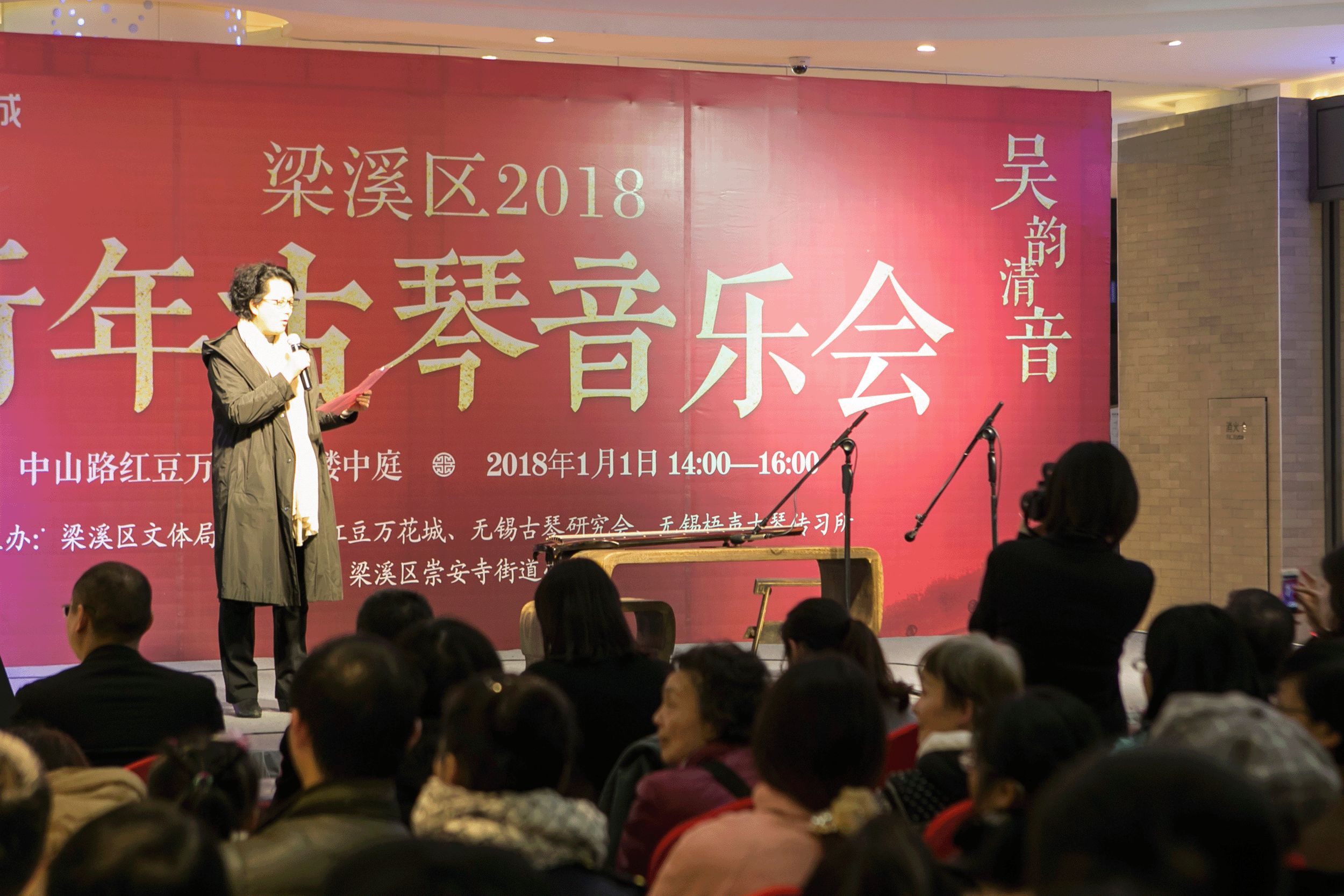 “七弦为益友,两耳是知音”,下午2时10分,在音乐会主持人无锡古琴研究会理事丁雪雅女士诗情画意的开场白中,由梁溪区文体局、红豆万花城、无锡古琴研究会、无锡梧声古琴传习所主办,梁溪区崇安寺街道办事处协办的“吴韵清音”梁溪区2018新年古琴音乐会正式拉开序幕。