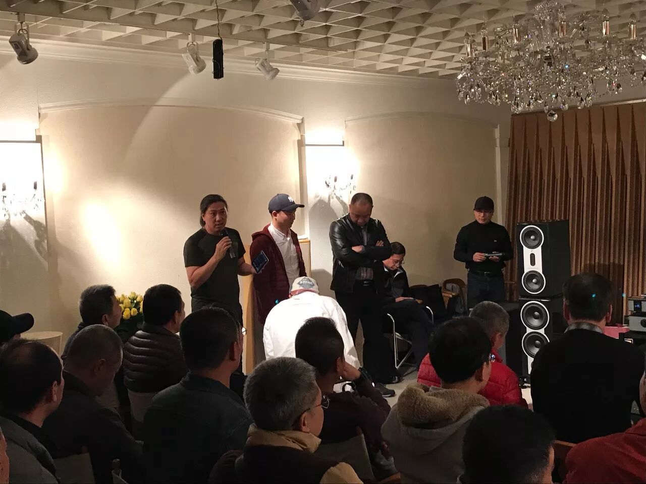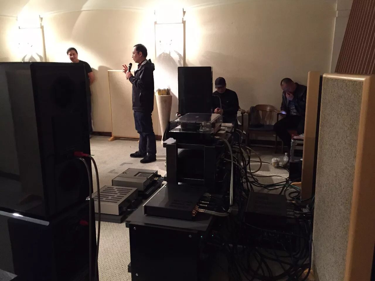 现场主持是广东音乐电台《音响世界》节目的吴斌和赵毅敏老师,ERIC黄、邝医生、峰哥几位嘉宾也是节目中的常客,音响世界是国内最早关于高保真音响类型的谈话节目,创办至今已经有20多年的历史,在广东地区的发烧友当中影响巨大,平时大家都是通过电波收听他们的声音,而本次活动令发烧友们得以近距离地和他们面对面互动交流,亲身聆听他们对音乐的见解,不同录音及器材对音乐重播的影响,意义重大。