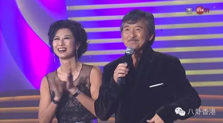 林子祥今晩获颁「名人堂」,由叶蒨文(沙丽)颁奖,林子祥发表得奖感受,二人甜蜜亲吻脸颊。