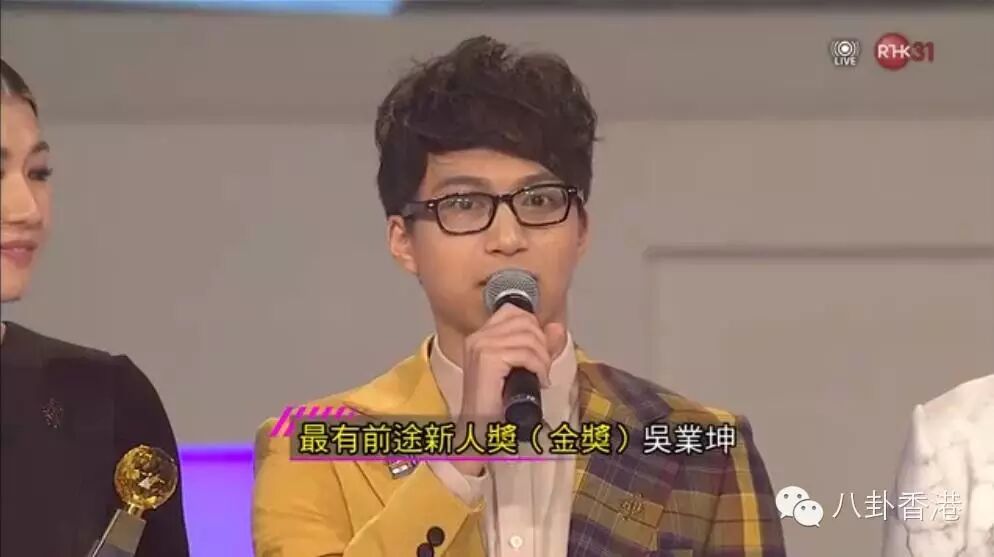 吴业坤(坤哥)今晚夺得「最有前途新人奖」金奖,他今次得奖时没有激动落泪,答谢香港电台、无线、星娱乐、粉丝及家人。