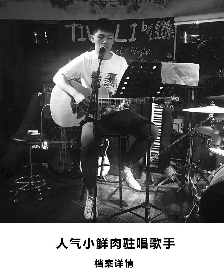 MAOLIVEHOUSE ,育音堂等一票炙手可热的LIVE BAR里崭露过头角,一把木琴,一条牛仔裤,一脸的鲜肉,还有帅气的外型,彰显了他超越年龄的气场。他是TIVOLI BY 696 LIVE酒吧里的闪耀人气之星。活动当天将与你邂逅哟。