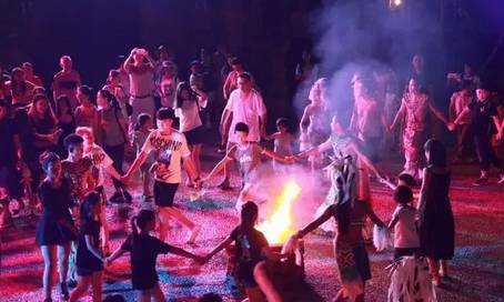 以“红旗飘飘彩绸舞”、56个少数民族服装展示代表及民族舞蹈表演、公鸡舞表演等向观众展示我国丰富多彩的传统文化,为游客献上最诚挚的节日祝福。