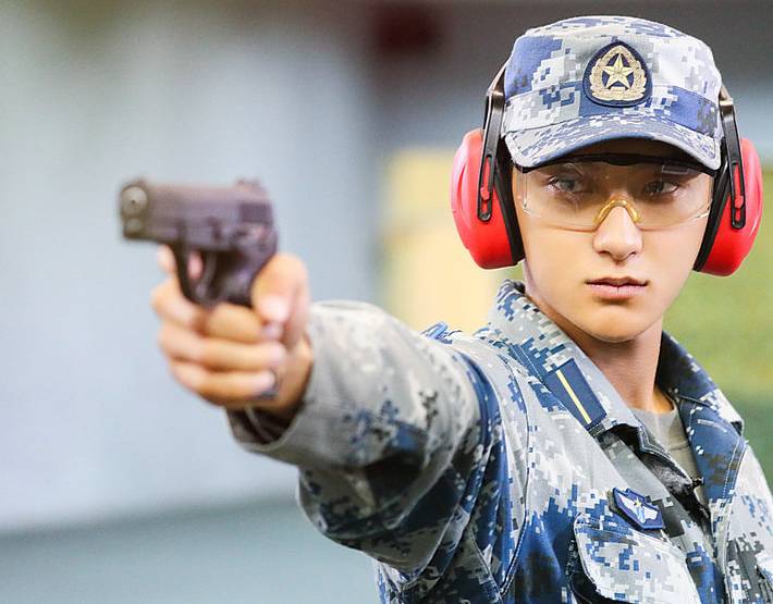 然而韬韬的大招还在后面,抗晕眩测试、固滚训练等等项目,黄子韬的成绩都排在男兵首位,在手枪射击训练中,以7发58环的成绩拿下第一名,成了新兵里的“神枪手”。
