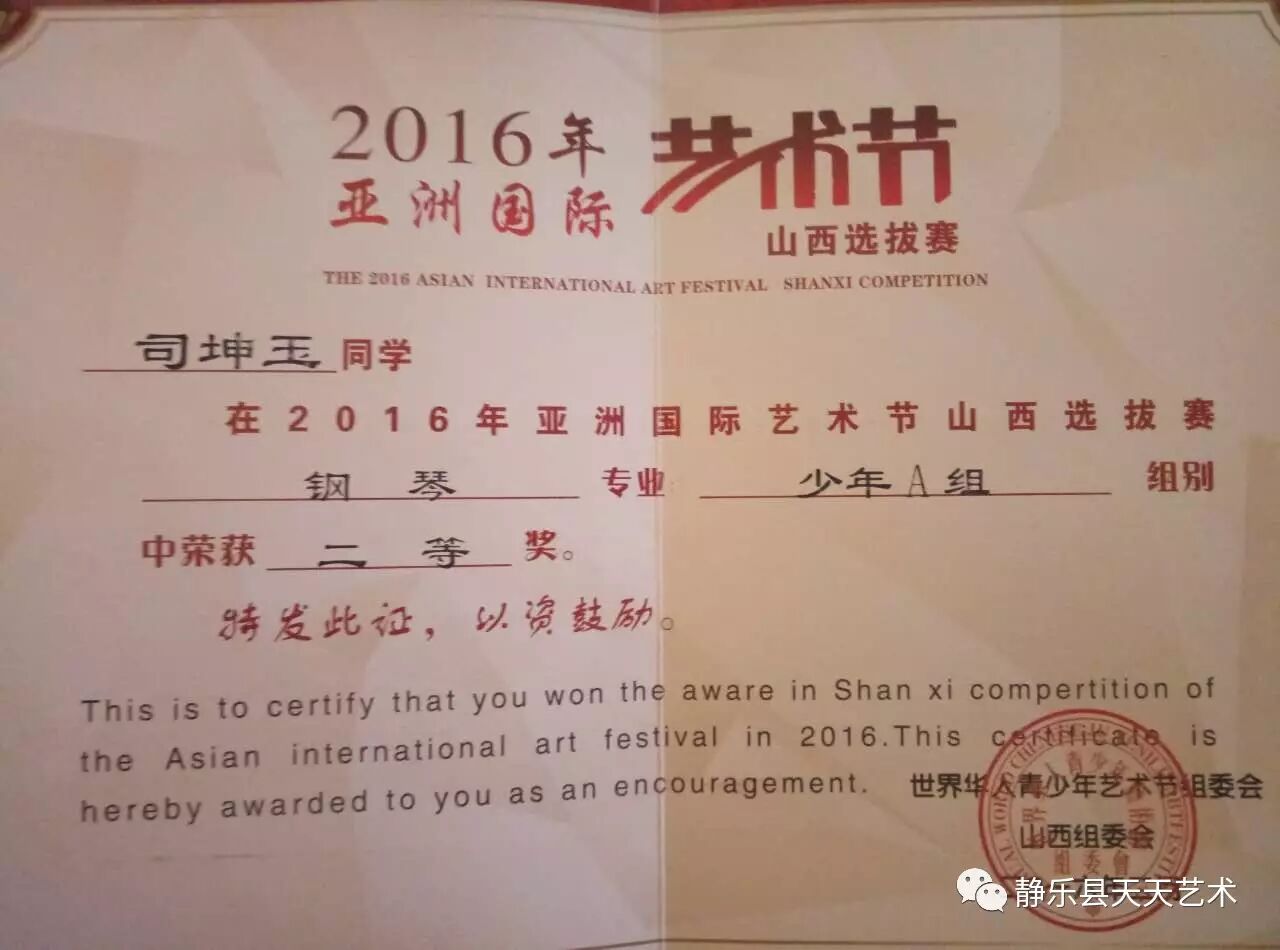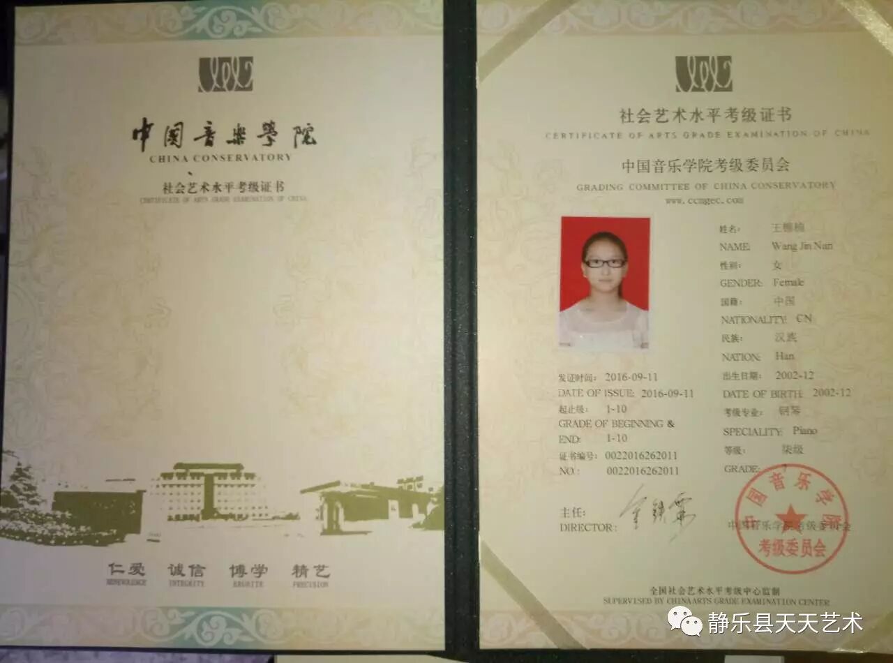 2016年获得中国音乐学院钢琴9级证书