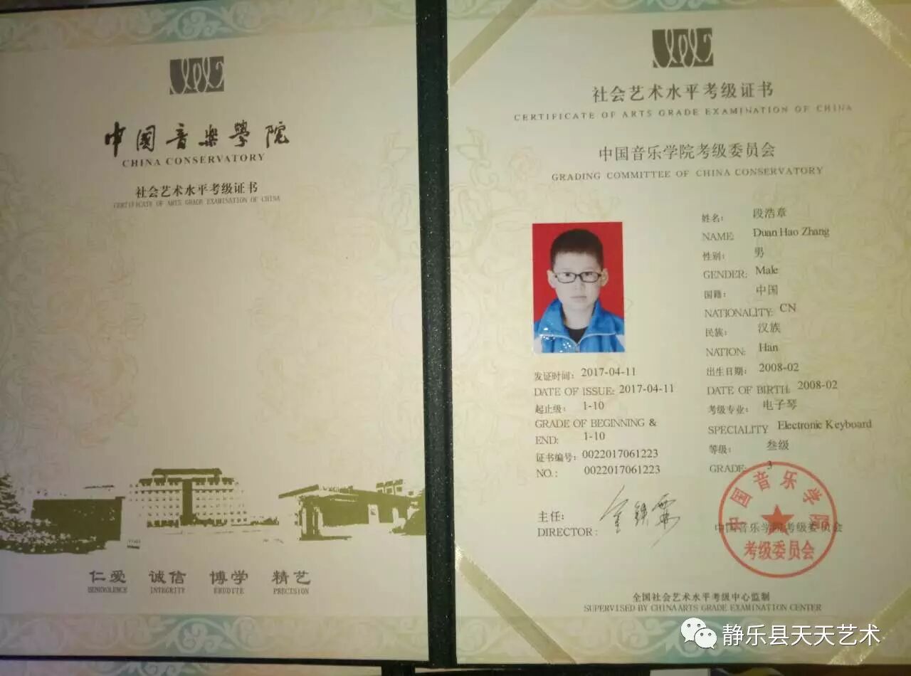 中国音乐学院考级证书
