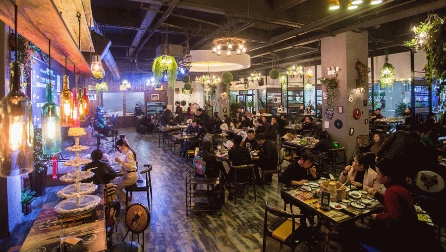 慕希推崇放松自由的城市生活意趣,反对刻板固化的空间设置,在规划上竭尽所能,疏密结合,软硬搭配,既有鲜明的英伦工业风趋向,也有美式布鲁斯酒吧的自由欢快。除了大厅,只有为数不多的几个包间。只要走进慕希,就会和整个环境融为一体,放飞自我!