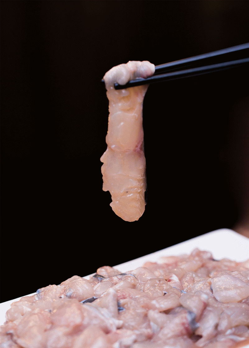 之所以可以如此迅速的加熟,全部得益于生鱼片都是活鱼现杀鲜切,肉质非常细嫩,遇热即熟,入口清香,美味鲜滑!