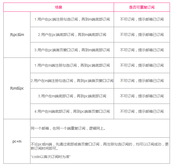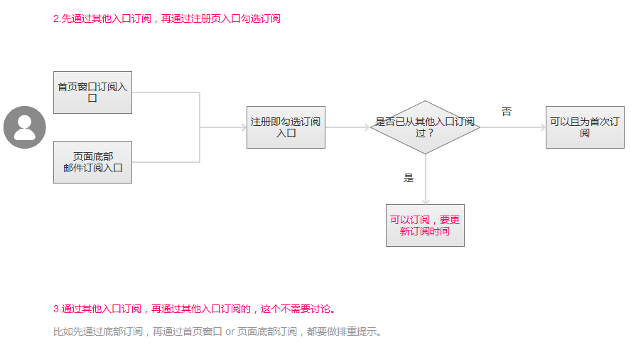 接上,这里会遇到一个问题——即用户通过网站页面底部订阅 or 首页窗口订阅与注册页勾选订阅哪个在先哪个在后,处理逻辑是不一样的。