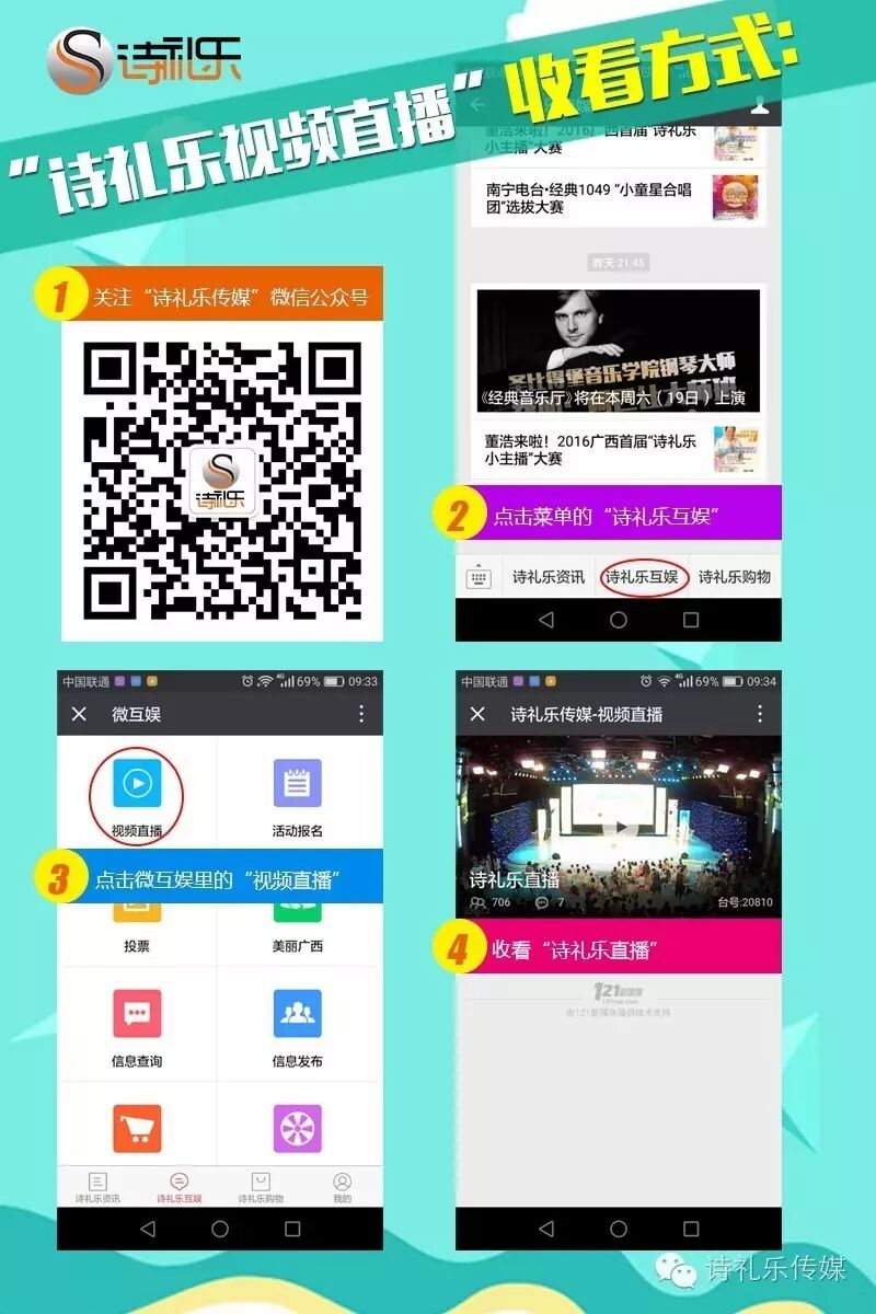 二、 关注诗礼乐传媒官方微信,点击诗礼乐互娱,进入视频直播