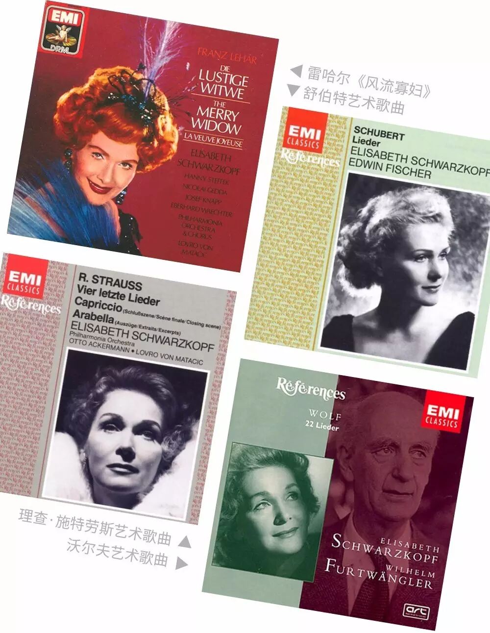 施瓦茨科普夫唱的德奥艺术歌曲我倒是听得较多,不过直到今天看来,我也以为她的演唱并无太多过人之处,至少在修养和装饰性方面根本无法和洛特·雷曼、伊丽莎白·舒曼以及莱宁、弗拉克丝塔、迪拉-卡萨、施特莱希等同视之,甚至在声音的宽广度与质感上也比不了年轻一辈的昆杜拉·雅诺薇茨等人。但是,那个时代留下的声音已经很少了,特别是录音效果能够达到满意的。对于声乐的录音来说,音响效果直接关乎到声音是否失真。在这一点上,施瓦茨科普夫赶上了好时代,而且相对其他歌唱家来说,她的录音机会更多,因为众所周知,她的夫君就是战后古典音乐录音领域的主宰瓦尔特·莱格,这同时也保证了给施瓦茨科普夫做伴奏的都是富特文格勒、卡拉扬、埃德温·菲舍尔、、加利埃拉、朱利尼、马塔西奇、赛尔这种级别的人物。他们保证了乐队和钢琴伴奏的水准,在精神性和华丽高贵的气质方面起到了相得益彰的作用。