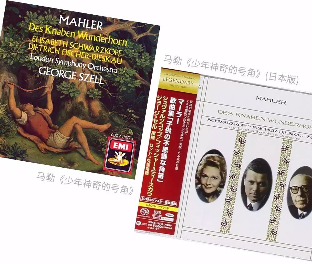 据我所知,在中国的爱乐者圈子里,把施瓦茨科普夫当作“梦中情人”的不在少数,当然也有“才大于知”的人因为施瓦茨科普夫也曾经是的“梦中情人”而不依不饶,大加挞伐。不过从莱格年代开始,EMI 唱片公司靠施瓦茨科普夫赚得盆满钵满却是事实,几乎每隔一段时间,EMI 都要出版一下稍微换换面孔的所谓纪念专辑,不管是什么形式,只要是关于施瓦茨科普夫的唱片,就一定要用她来做封面,唯一例外的是赛尔指挥伴奏的菲舍-迪斯考配唱的马勒《少年神奇的号角》,封面用了一幅油画,但是到了日本版,还是上了施瓦茨科普夫的照片,为了这张少见的照片,当然音效也有相当程度的改善,我重复购买了这张“日本版”。