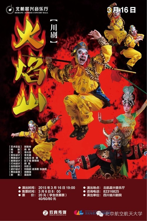 【剧目简介】《火焰山》是四川省川剧院2007年创作的新编神话剧,故事源于中国传统四大名著之一的《西游记》中“孙悟空三借芭蕉扇”片段,主要讲述了唐僧师徒一行四人行经火焰山,降伏牛魔王夫妇取得芭蕉扇的故事。