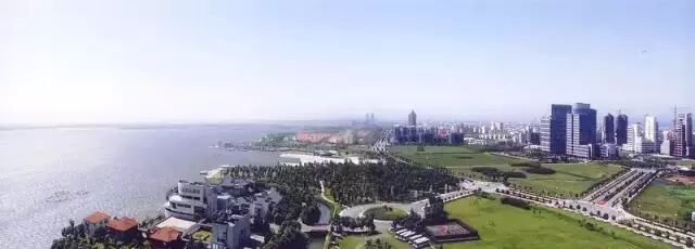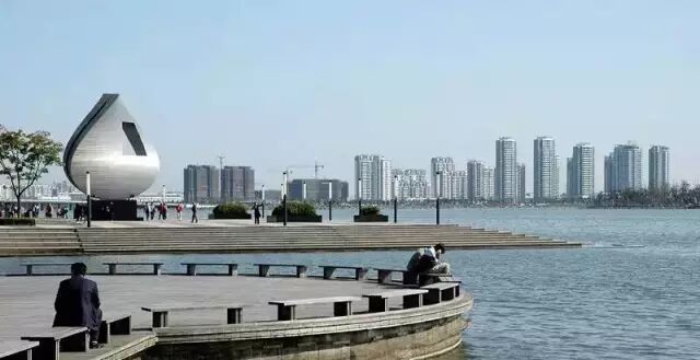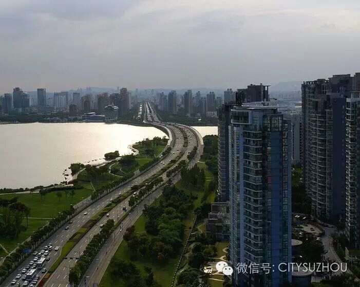 建筑物随着圆晕向外扩展而渐次升高,一个个城市新地标在金鸡湖周边不断崛起。