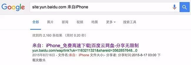 不过,关于网盘资料泄漏的事情也不是一朝一夕了,今日更有网友爆料称百度涉嫌自动分享用户照片,在谷歌搜索引擎中输入“site:yun.baidu.com 来自iPhone(或其他手机型号)”,即可搜到大量用户的手机照片。