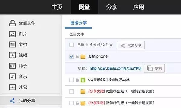 温馨提醒:如果你分享了某个文件,除了朋友访问链接之外,在你的网盘分享页面也能看见喔,隐私内容最好通过“创建私密链接“进行分享。