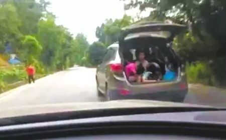 一辆越野车能装多少人?达州网友“过我的一生”前不久发了一个网帖,称亲眼目睹车牌号为川SCN0**的越野车,至少装了10个人——车内的座位坐满了人,后备箱内竟然塞了5个小孩,且在行驶过程中后备箱未关闭。