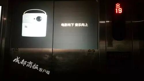 最近,家住成都金牛区花满庭小区的业主们突然发现,小区的电梯内多了一个特殊的设备——投影仪。两天前,这个投影仪开始工作。业主们发现,每当进出电梯时,处于轿厢上方与电梯门正对位置的投影仪就会散着强光,投射到前方的门板上,播放视频广告。