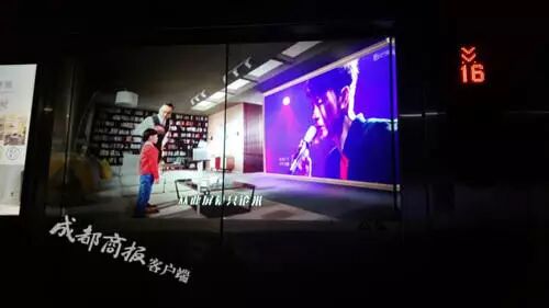陈女士介绍,由于照明灯不亮,在电梯里甚至都看不到楼层按钮,而然投影仪却很清晰地放着广告。“就是在电梯开关门的那个时间放两段广告,中途上下行的时候是没有播放的,但这个阶段电梯里一直是黑的。”