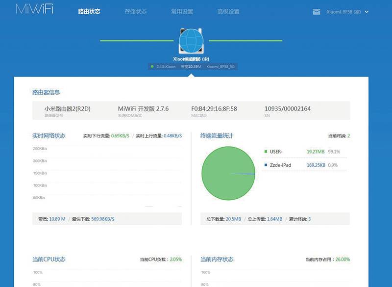 ▲MiWiFi的UI美观度不错,选项的设计逻辑清楚,上手没难度,延续了小米在系统UI设计上不错的水准。
