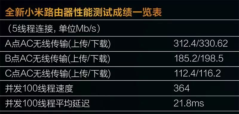 在并发100线程网络应用的测试中,全新小米路由器的平均数据传输速度表现不错,但在数据平均延迟方面则比较一般,21.8ms的成绩称不上理想。未来建议小米进一步优化固件,挖掘出这款产品的最大潜力来。