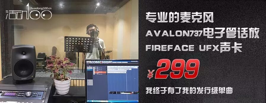 299元,在100音乐工作室,就能录一首歌曲,专业的麦克风,德国产U87——陈奕迅曾经使用此麦克风灌录过一张名为《U87》的专辑,还记得那首荡气回肠的《浮夸》吗?这首歌曲使用的麦克风就是U87,AVALON737电子管话放,FIREFACE UFX声卡,299元,就能录出发行级水平的单曲,唱完还能保存,永久纪念。