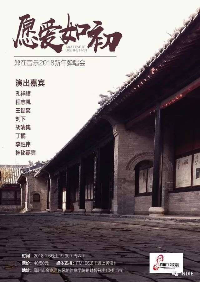 2018年1月6日,我们在郑州半亩半举行一场名为《愿爱如初》的新年弹唱会,以此欢迎2018的到来,以及向2017道别。各位小伙伴们,我们现场见吧!