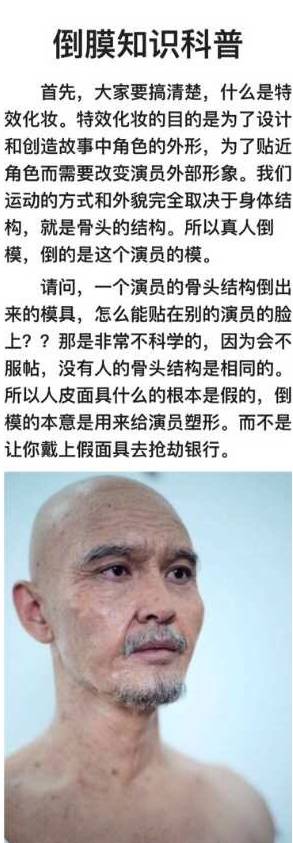 倒膜的本意是用来给演员塑性,造假十分昂贵,且不说跟替身定义千差万别,就这个用费,还不如请一个真人替身出场划算呢!再者,发布这条新闻的那位网友,早已删除微博,称自己是胡诌胡诌啦。
