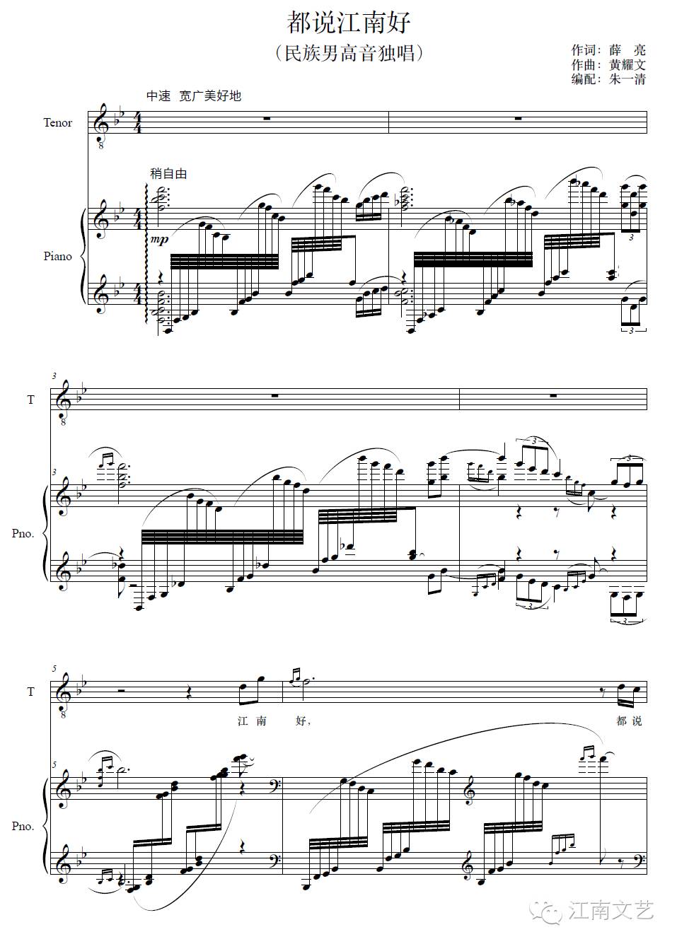 歌曲《都说江南好》旋律优美、流畅、亲切、自然,词意生动,耐人回味,表达了江南人热爱、赞美大江南的美好情怀和对生活的美好愿景。男高音演唱更增添了大江南的“好一派时代的气度”。然而如此温婉动听的江南旋律却出自一位北方人,黄耀文是一位地道的北方汉子,工作原因已在江南水乡生活多年,对这一方水土自是有一份独特的感情,北方人的豪爽加上常年生活在江南水乡的情感,凝聚成一首动听的歌曲……