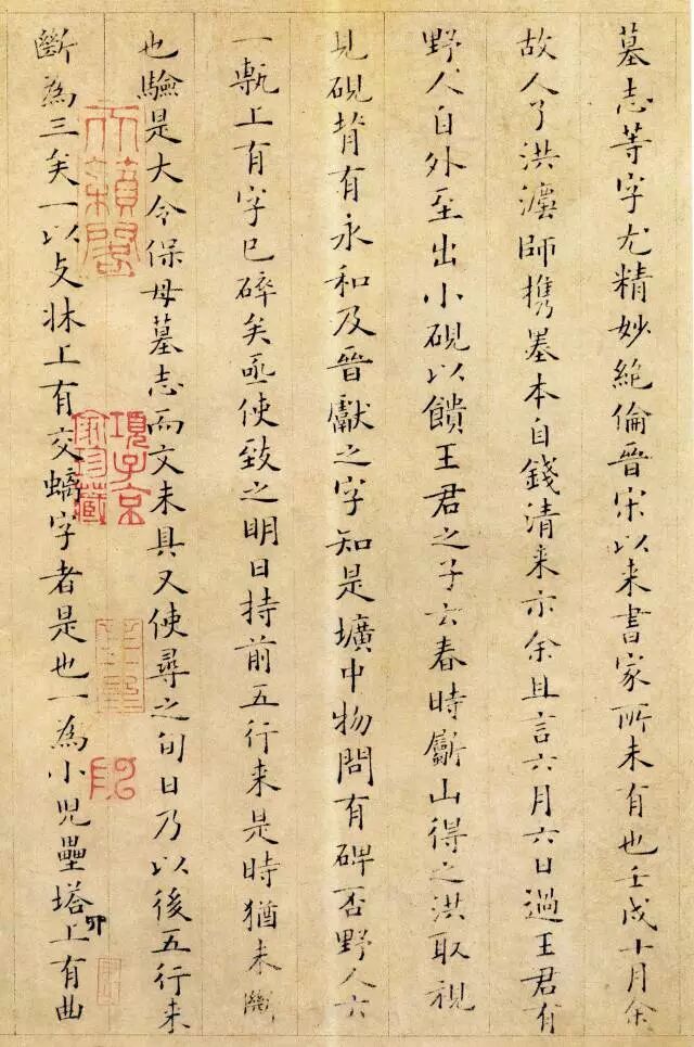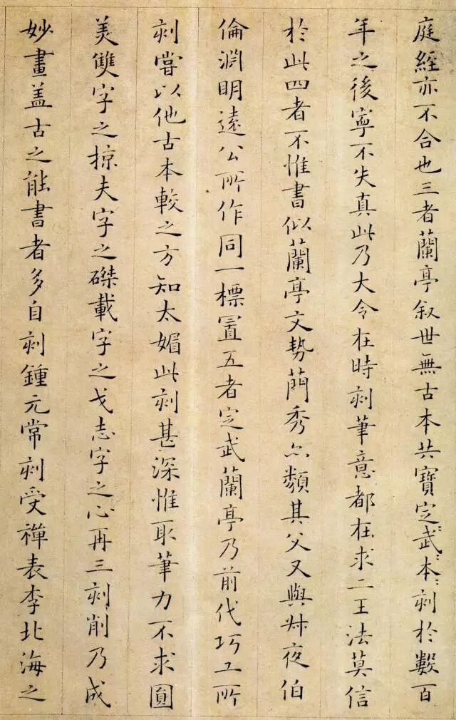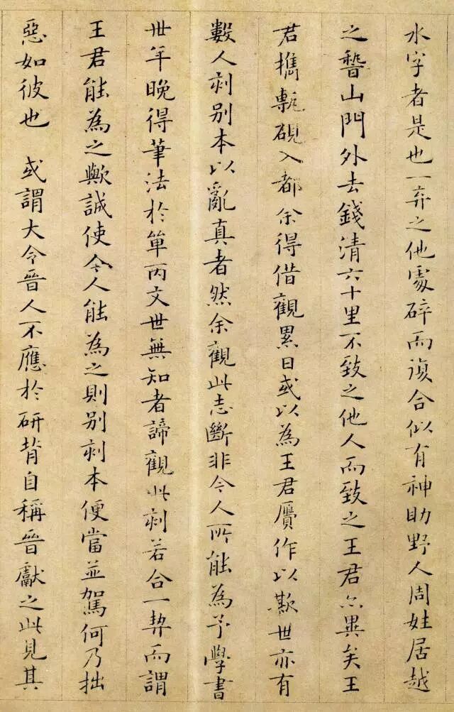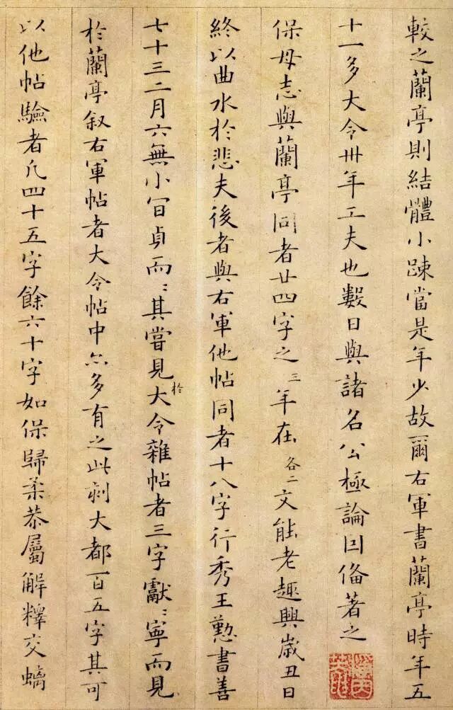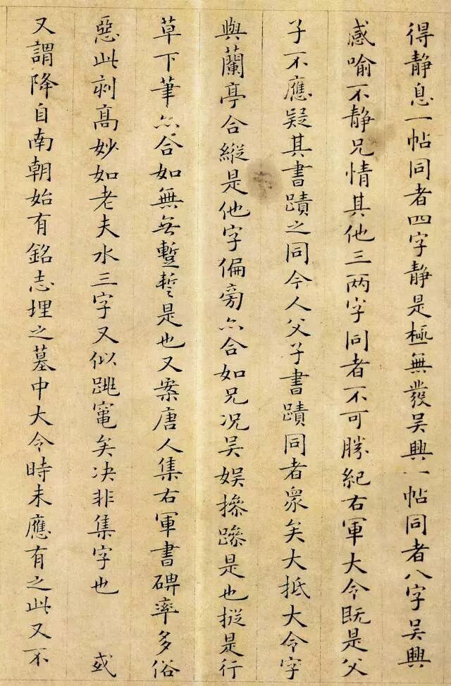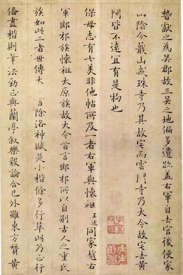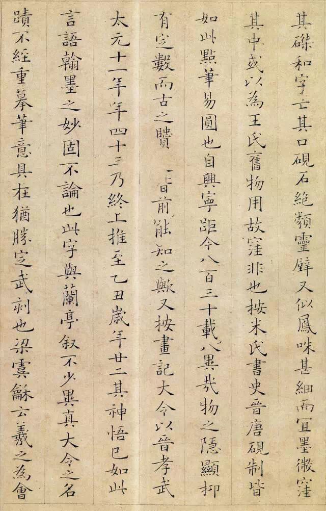 从小楷《跋王献之保母帖》中可以看出他用笔精到,典雅俊润,且受初唐诸家书风影响,不随时俗,清新脱俗。