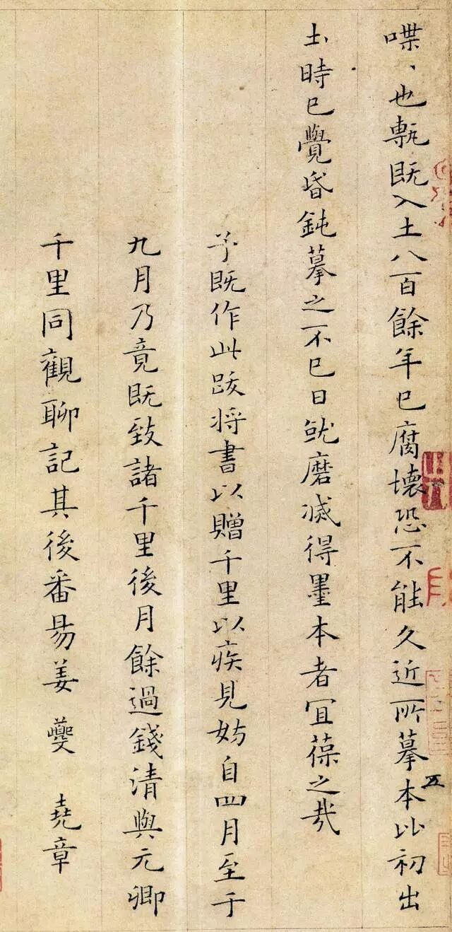 姜夔《跋王献之保母帖》,小楷。纸本,三百一十六毫米,全文计一百零一行,现藏于故宫博物院。姜夔传世墨迹不多。