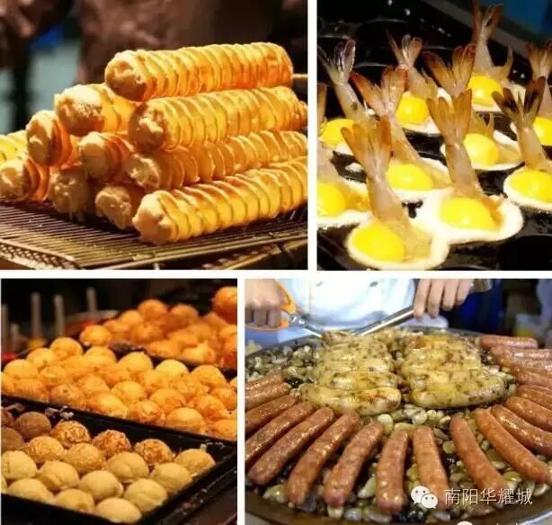 蚵仔煎、大肠包小肠、泡菜臭豆腐、轰炸大鱿鱼、大嘴猴果汁、豆乳火鸡肉、碳烤鸡排、疯狂烤僧肉、榴莲酥、香辣蟹、龙卷风、海螺串、盆栽冰淇淋、七彩玲珑包、米兰虾饼、三鲜豆皮、铁板鱼豆腐、沙茶鱿鱼、一口蟹、深水炸弹、牙签肉、一口肠、 油炸冰淇淋、 秋刀鱼、海鲜烧、铁板鱿鱼、雪梨汤 ......