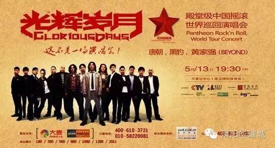 2011年,由中央电视台旗下上市公司中视传媒股份有限公司和最美年代音乐文化传播(北京)有限公司共同投资的《“光辉岁月”殿堂级中国摇滚全球巡回演唱会》,在一年半时间内完成全球26场演出。演出阵容为唐朝、黑豹、Beyond黄家强这三支在整个大中华区拥有最广泛影响力的摇滚乐队。2011年,《光辉岁月——殿堂级中国摇滚世界巡回演唱会》席卷全球,给全世界热爱摇滚的人一场前所未有、突破常规的摇滚音乐饕餮。