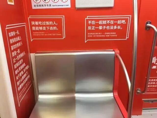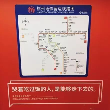 或许是看到了这些「乐评」的潜力,2017年3月20日,网易云音乐把点赞数最高的5000条优质乐评,印满了杭州市地铁1号线和整个江陵路地铁站。