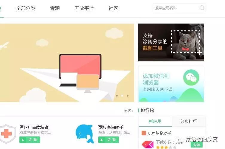 搜索结果出来以后 点那个安装按钮(我这里已经安装了所以出现 已安装三个字)然后我们回到刚才那个K歌页面 这时候扩展管理工具旁边是不是多了一个 灰色向下箭头了 ,你刷新下K歌网页他就会变蓝色的,如图: