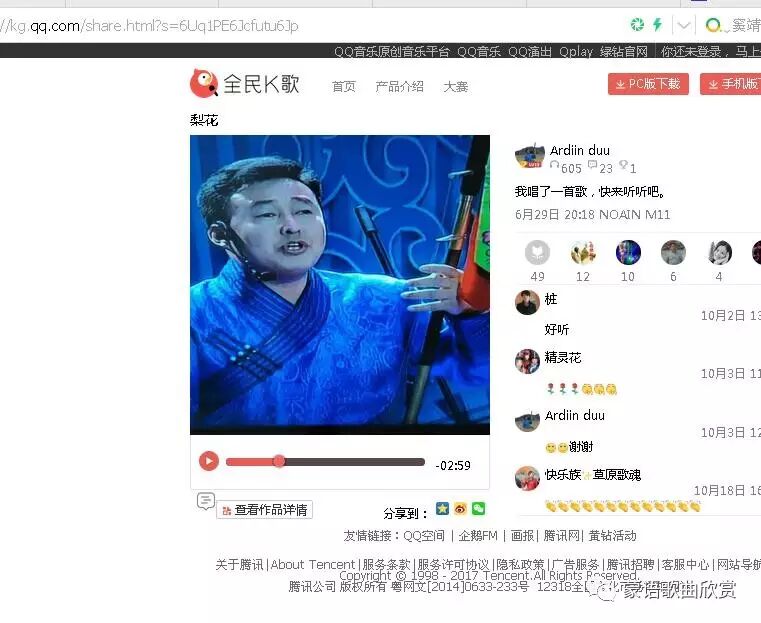其实很简单的,首先你登陆网页版的全民K歌曲,这个浏览器地址咋复制呢很简单,用QQ或者微信把地址复制到电脑就可以了,用浏览器打开全民K歌以后如图: