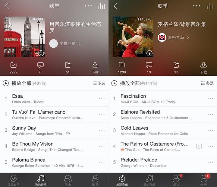 此外,音频节目里使用过的背景音乐收录进了我们在“网易云音乐电台”上的两个歌单里: